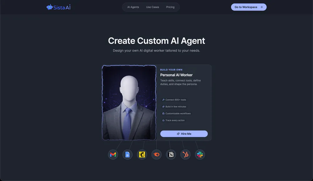 Integrations: Over 850 external tool integrations via MCP with OAuth connection management, cached tool schemas, health checks, and an app recommendation engine that suggests relevant capabilities when tools are connected. Existing agents and workflows can be imported as outsourced employees or connected via MCP to collaborate with teams. The platform is accessible from web, desktop, mobile, browser extensions, and third-party platform apps (Slack, Teams, Discord, Shopify, WordPress, Zapier), with an embeddable widget, client SDKs, and a CLI for programmatic access.